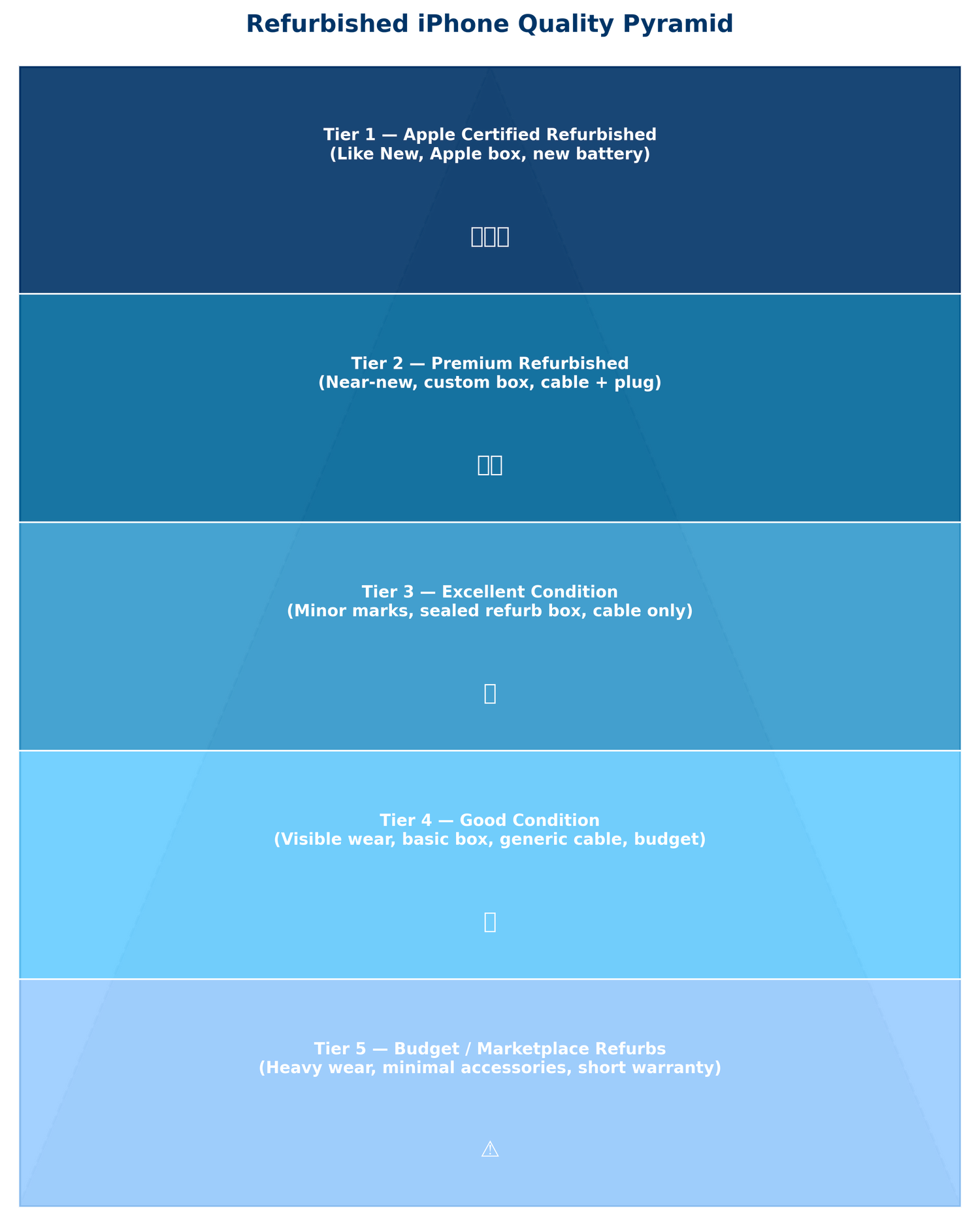 There are five tiers of refurbished iPhoens on the market, ranging from budget refurbishments to Apple Certified Refurbished at the very top.